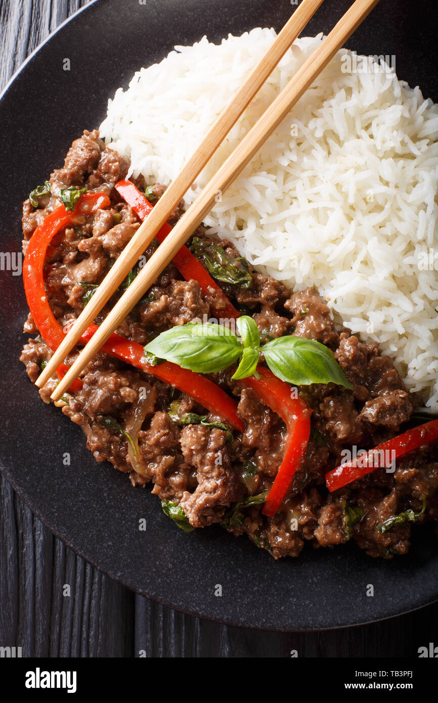 There are a lot of convoluted recipes for thai basil beef out there gra prao. Sautéed minced chicken with onions, bell peppers, thai basil leaves & jalapenos.